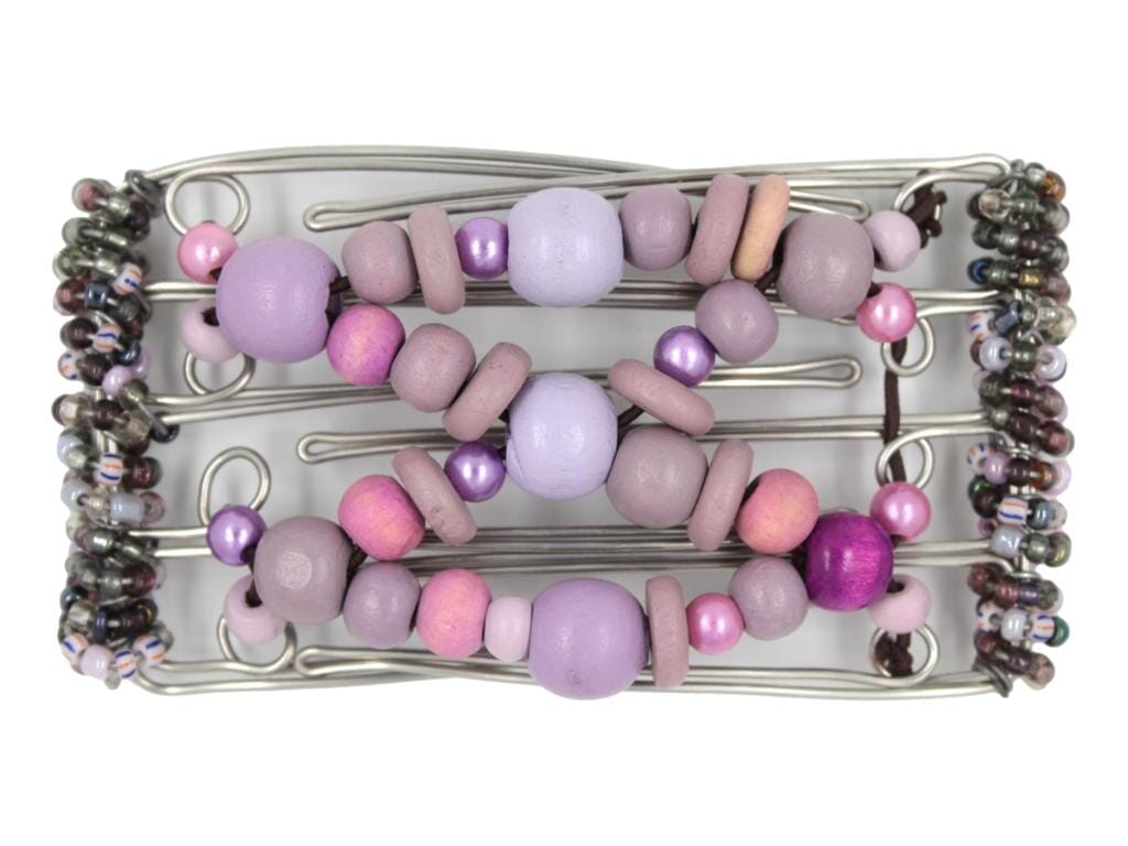 Immerse yourself in the enchanting world of color with our stunningly handcrafted, one-of-a-kind 5 Tong Wire Hair Clip that beautifully marries the rich hues of purple, lavender, and fuchsia. This delightful blend of colors is the perfect accessory to add a pop of color and a touch of whimsy to your everyday look. Each bead on this piece is meticulously selected, making every single one unique and special.