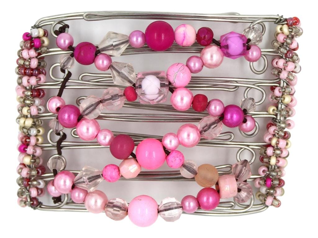 This beautiful 7 Tong Wire Hair Clip is the perfect accessory to add some sparkle and life to any outfit. This hair clip features an amazing array of pink and clear beads in various sizes, shapes, and shades - from soft pastels to bright magenta. Perfect for casual days out or fancier occasions, this hair clip looks especially gorgeous with updos.