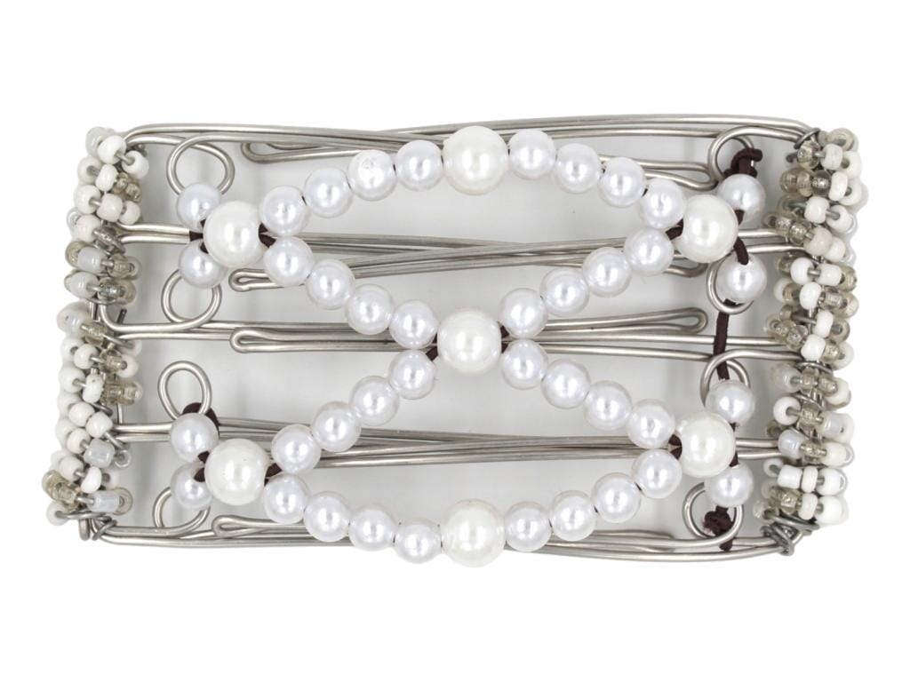 Exude timeless elegance with our exquisite all-white pearl 5 Tong Wire Hair Clip, perfectly suited for fine or thin hair. This sophisticated hair comb is ideal for updos, french twists, and wedding hairstyles, securely holding your locks in place while adding a touch of classic sophistication. It's also perfect for holding up a veil, making it a must-have hair accessory for your special day.