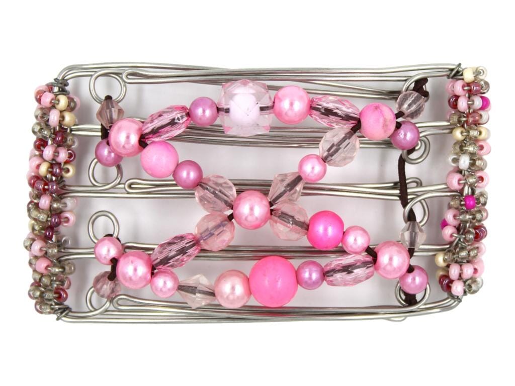 Pinkalicious! This beautiful 5 Tong Wire Hair Clip is the perfect accessory to add some sparkle and life to any outfit. This hair clip features an amazing array of pink and clear beads in various sizes and shades - from soft pastels to bright magenta. Perfect for casual days out or fancier occasions, this hair clip looks especially gorgeous with updos.