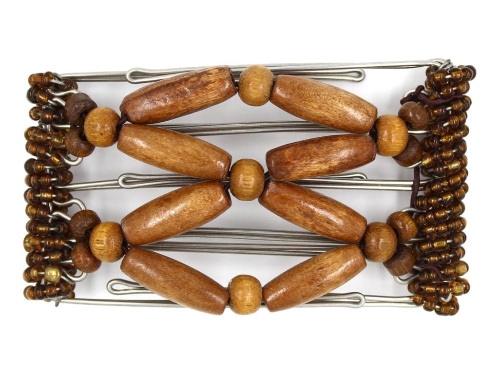 Elevate your everyday style with this exquisite African Butterfly Wire Hair Clip, featuring five teeth, adorned with warm honey blonde brown wood beads. Designed for those who appreciate artisanal craftsmanship, this piece brings understated sophistication to any hairstyle while celebrating timeless classic aesthetics. Whether you're seeking a polished finish for work or a refined accent for special occasions, this clip delivers both beauty and functionality with effortless grace.