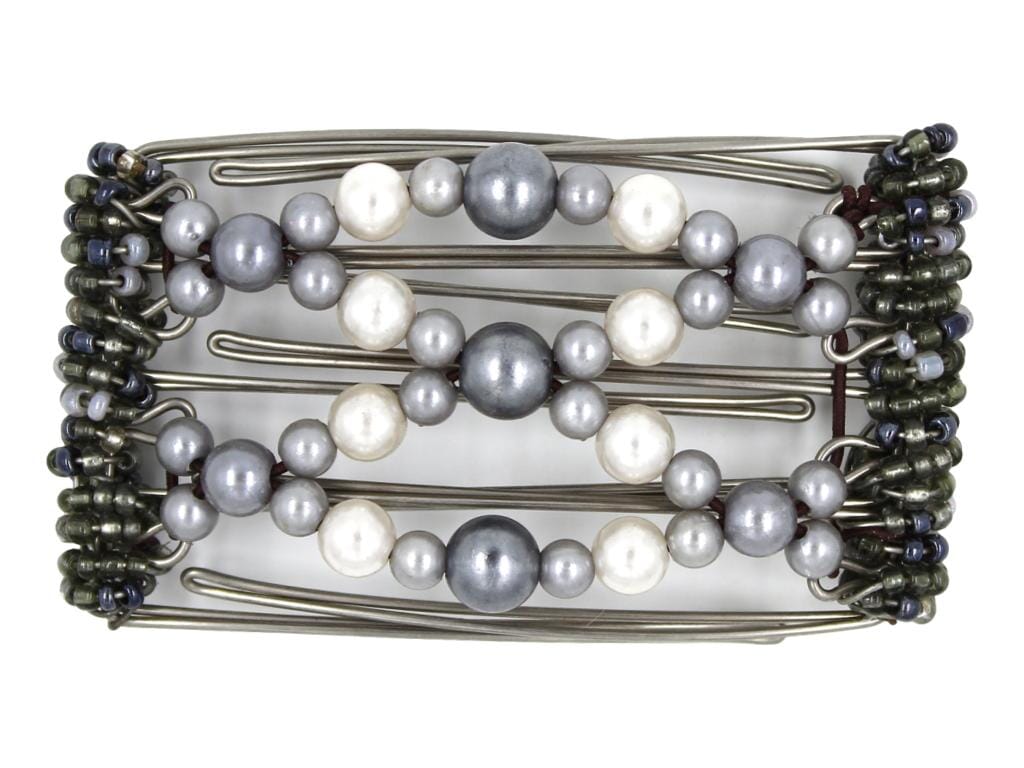 A dramatic trio of pearly beads takes center stage in this striking 5 Tong Wire Hair Clip! 💎 Large gunmetal pearly beads command attention, elegantly paired with light gray pearly beads and white pearly beads that add a touch of soft romance, creating a look that's perfect for evening elegance!