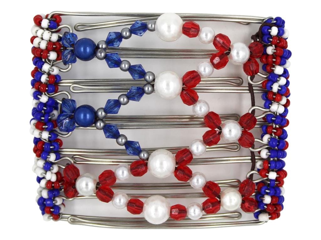 Let's show support for our country and acknowledge the sacrifices of our brave heroes with this 7 Tong Wire Hair Clip that proudly displays the American flag. Its unique charm will surely draw attention from other patriotic Americans. Practical and fashionable, this hair clip is suitable for both casual and dressy occasions. The 7 tooth design creates a strong hold that will last all day, keeping your hair in place and looking great!