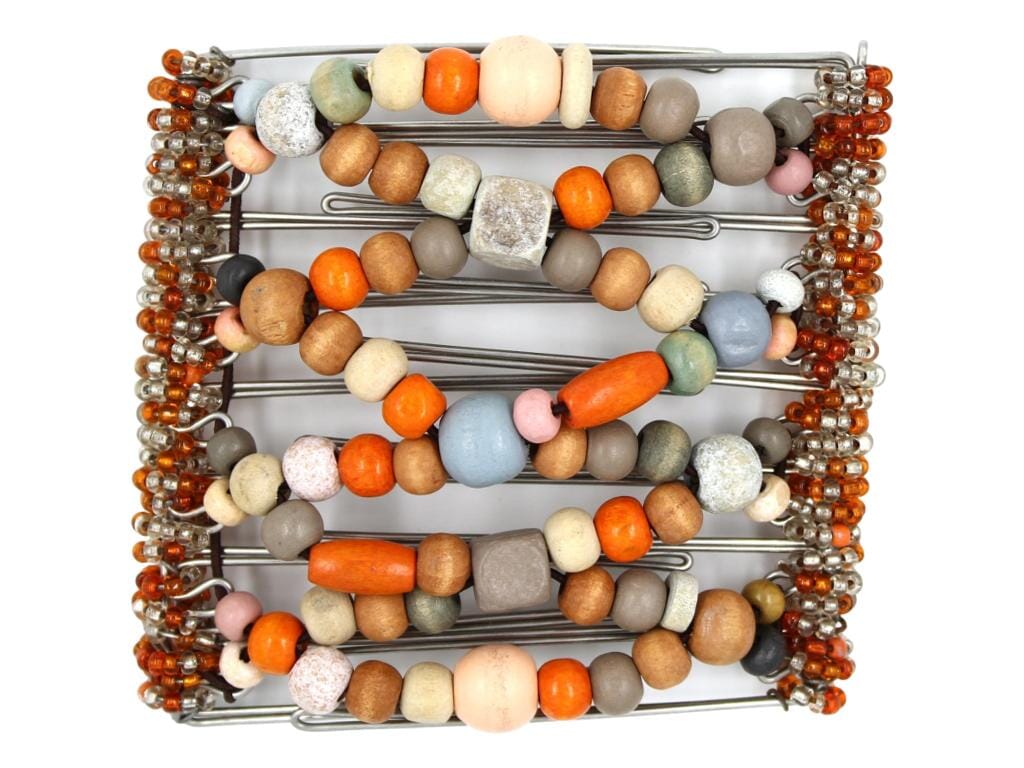 Meet the African Butterfly Wire Hair Clip - 9 Tong 845, a handcrafted masterpiece inspired by nature's splendor. This thick hair clip embodies the vibrant hues of sunsets and autumn leaves, featuring an enchanting array of orange and nature insprired wood beads in diverse shapes and styles. Each meticulously chosen bead creates a captivating display, adding whimsy and elegance to any hairstyle. Perfect for nature lovers and those seeking unique accessories!