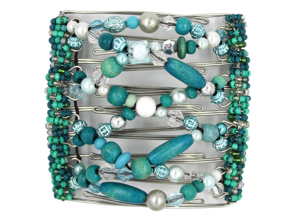 Dive into ocean-inspired elegance with this one-of-a-kind 9 Tong Wire Hair Clip, bursting with mesmerizing turquoise blues that channel mermaid vibes. Handcrafted with African Butterfly artistry at its heart, this playful accessory brings a splash of nature's magic to your styling routine. Whether you're channeling coastal dreams or simply want a statement piece that celebrates bold, beautiful craftsmanship, this clip delivers personality and hold in one enchanting acccessory.