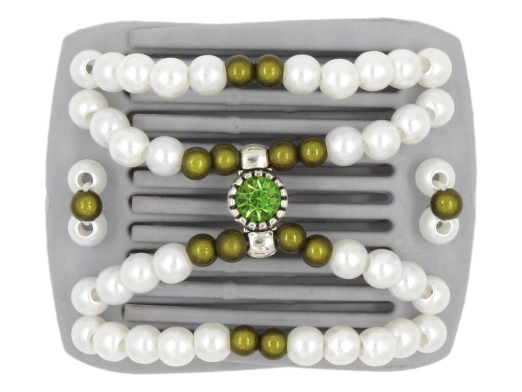 Nature meets elegance! This Gray LadyBug Hair Comb features a stunning center silver charm with a Peridot rhinestone, surrounded by olive green magic beads that evoke the earthy tones of a forest, and pearl beads that add a touch of sophistication. Perfect for garden weddings, outdoor events, or anyone who loves a whimsical, nature-inspired look with a touch of glamour!