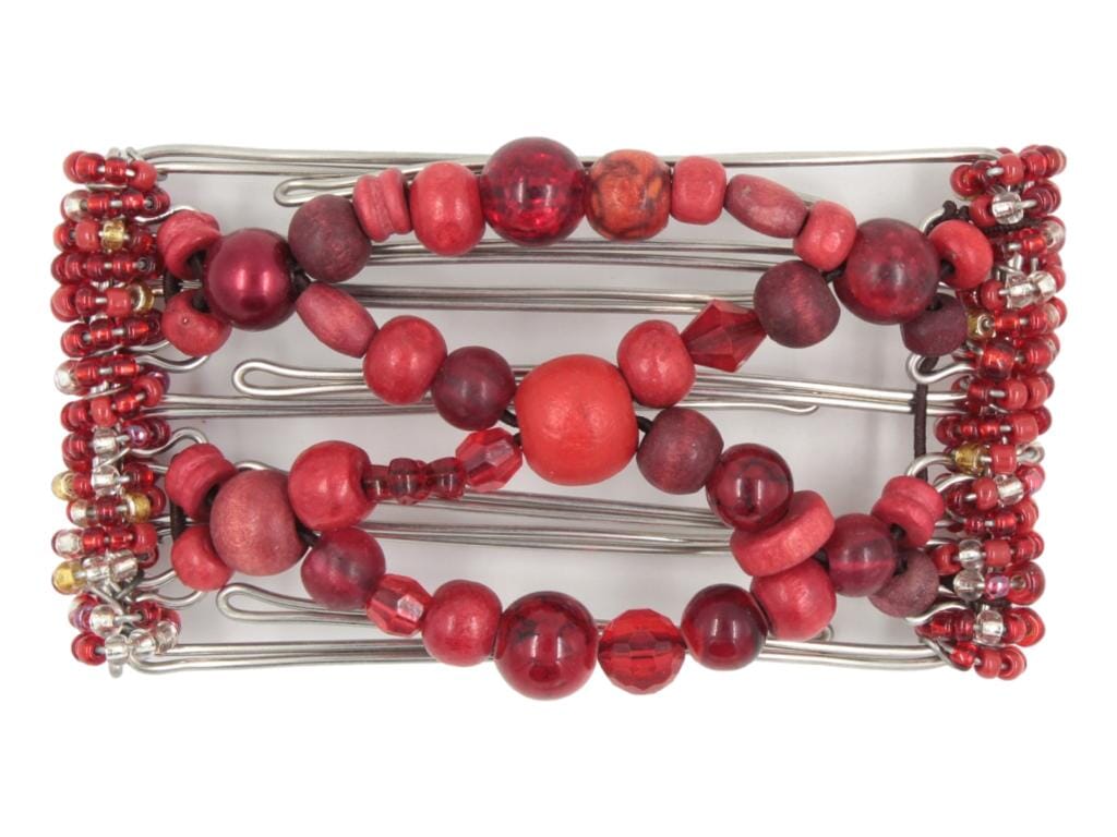 Add a touch of elegance and festive charm to your hairstyle with this beautifully handcrafted 5 Tong Wire Hair Clip. Featuring an artful mix of rich, red wood beads and deep red acrylic beads, each element is thoughtfully combined to create a unique accessory bursting with character. Measuring perfectly to secure your medium thickness to fine or thin hair comfortably, this clip is ideal for both everyday wear and special occasions.