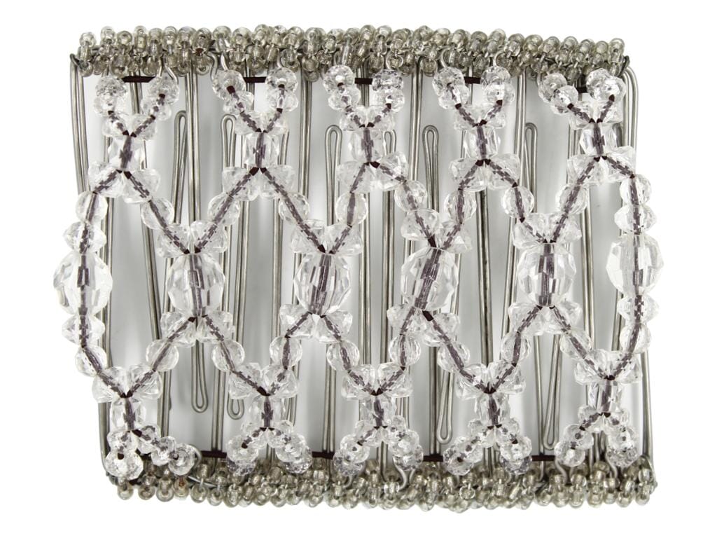 This 11 Tong Wire Hair Clip is a chic and adaptable accessory that stands out! Decorated with clear, multi-faceted acrylic beads in an appeaing pattern, it brings a touch of elegance and refinement. Perfect for weddings or any memorable event, its timeless design adds a dazzling accent to your long hair and style. Crafted with care from top-quality materials, this beautiful hair clip is built to be a cherished piece for years to come.