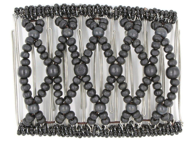 This fantastic 11 Tong Wire Hair Clip features all black wood beads. This is the perfect addition to any wardrobe due to its simplicity and can be worn to a dressy event as well. Note: Bead color may have a slight variation from those displayed due to different devices.