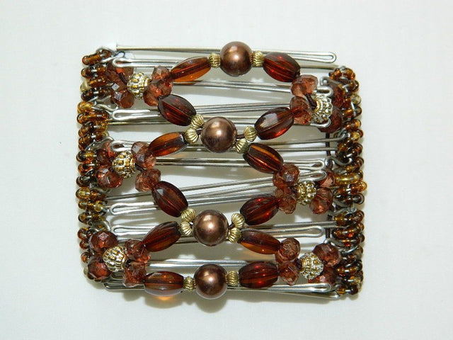 Our 7 Tong Wire Comb measures approximately 2 3/4". This size is an excellent choice for normal to thick hair, up to about shoulder length. Designed in a criss-cross pattern, this wire comb will help hold layered hair the best! It is also the perfect comb if you are trying to grow your hair out. This and the 9 Tong Wire Comb, which measures about 4", will both work if you normally buy our standard size combs. If your hair is on the thinner side, we recommend the 7 tong. If your hair is on the thicker side, try the 9 tong. For some women, both will work.