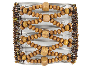 This 9 Tong Wire Comb features all honey brown wood beads. Note: Bead color may have a slight variation from those displayed due to different devices.