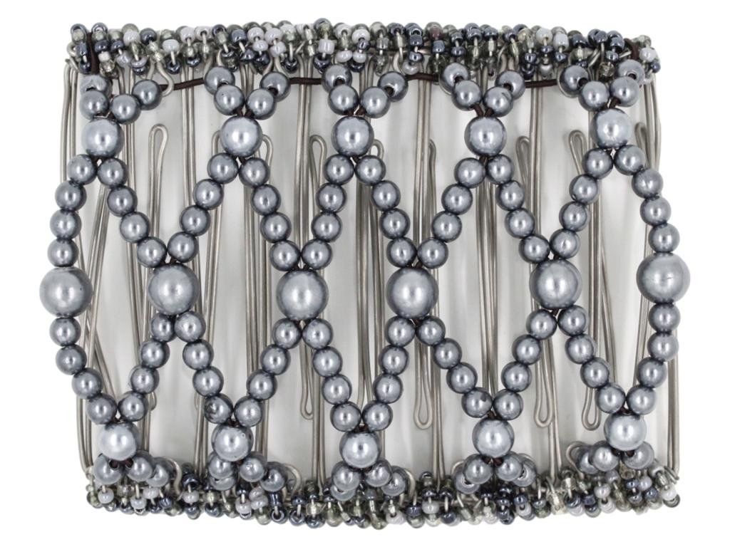 This 11 Tong Wire Clip features gunmetal gray pearl beads, which is a unique blend of gray and silver blue with a metallic feel. Note: Bead color may have a slight variation from those displayed due to different devices.