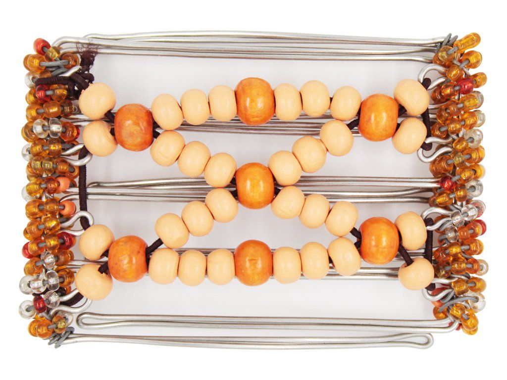 Sweet as a Georgia peach! This delicious 5 Tong Wire Hair Clip features apricot and peach wood beads. Note: Bead color may have a slight variation from those displayed due to different devices.