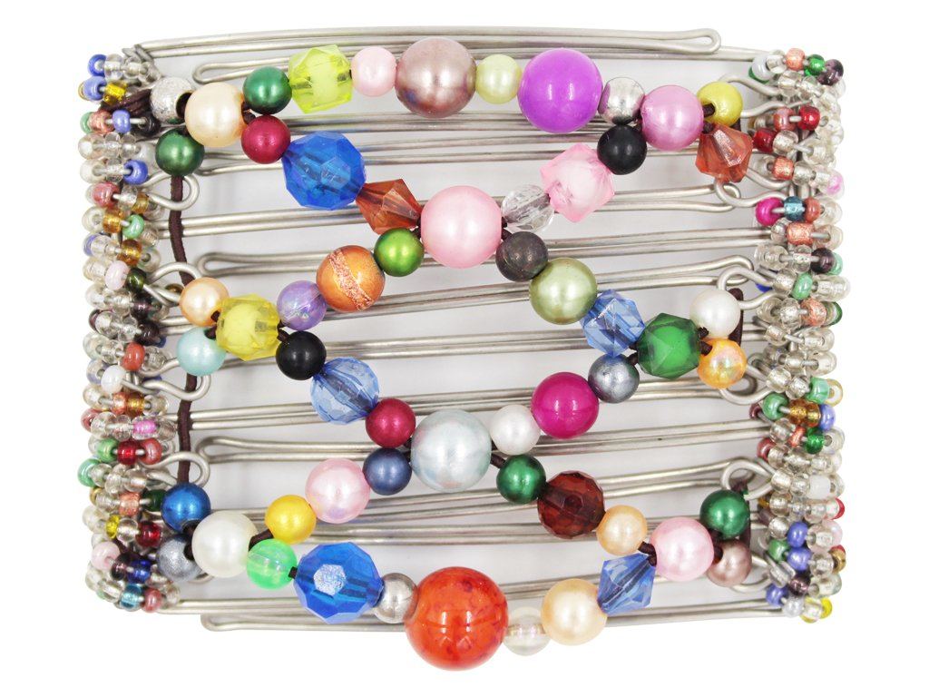 This 7 Tong Wire Hair Clip features different types, shapes, and colors of beads. It is one of our most popular hair clips due to its versatility. This truly is a one-of-a-kind hair clip. Note: Bead color may have a slight variation from those displayed due to different devices.