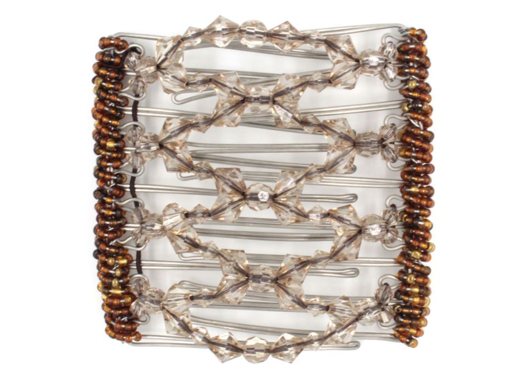This 9 Tong Wire Clip features sparkling champagne colored acrylic beads. Such a stunning hair comb. Perfect for a holiday party! Note: Bead color may have a slight variation from those displayed due to different devices.