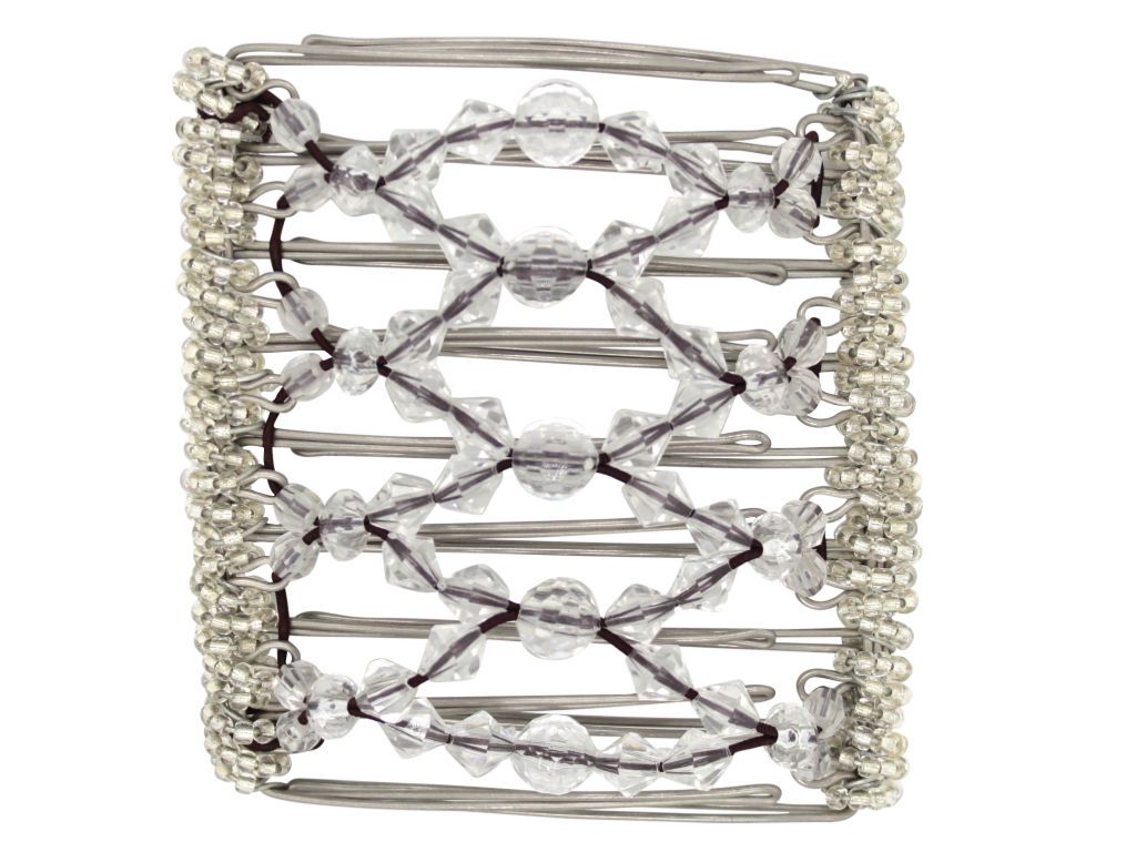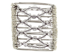 This 9 Tong Wire Hair Clip features all clear multi-faceted acrylic beads. This is one of our most versatile combs and is one of our most popular! This elegant comb is perfect for that special wedding day for brides who prefer all one color or to add some glam to your hair! Note: Bead color may have a slight variation from those displayed due to different devices.