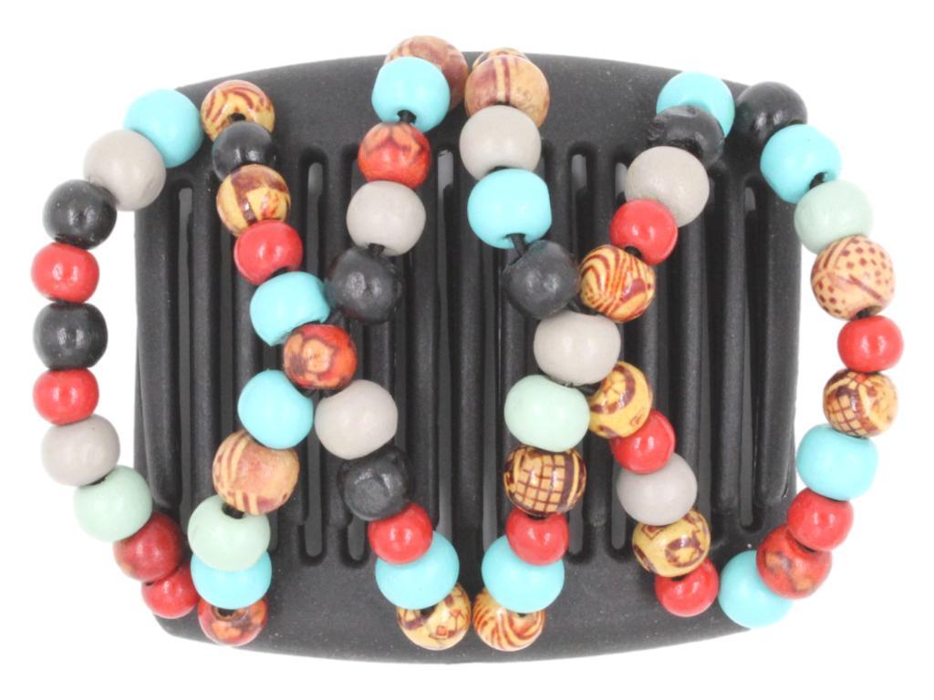 This playful Chameleon Beada Black Hair Comb features a fantastic mix of different colors and patterned wood beads. This is one of our most popular hair combs because it's so much fun and versatile. This truly is a one-of-a-kind!! Note: Bead color may have a slight variation from those displayed due to different devices.