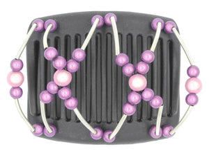 This black Chameleon Beada Tube Hair Comb has what we call magic (or miracle) beads. These particular beads glow in the sun and reflect light. They truly are magical! This comb features mauve and carnation pink magic beads. Silver tubes finish this stunning hair comb! Note: Bead color may have a slight variation from those displayed due to different devices.