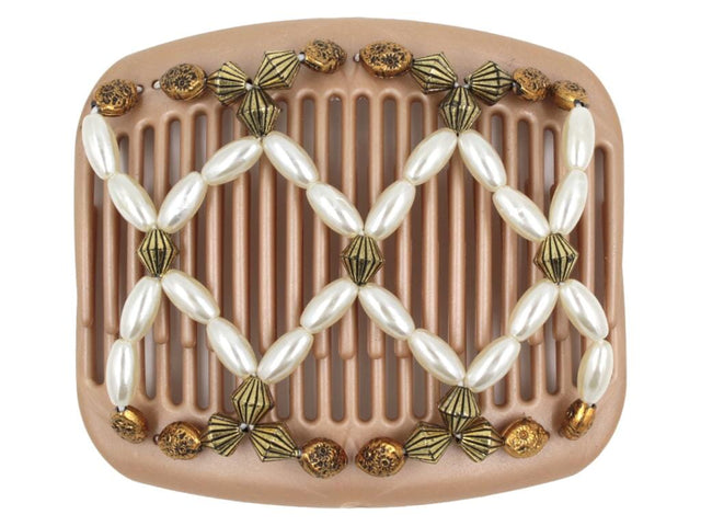 African Butterfly Hair Comb - Ndalena Brown Pearl 02 - Large / Brown Pearl is backordered and will ship as soon as it is back in stock.