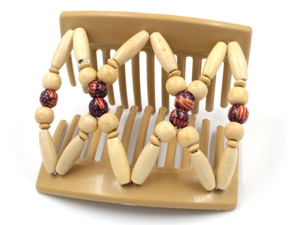 Introducing this Beada Blonde Thick Hair Comb – a beautiful and practical accessory designed especially with thick hair in mind. This hair comb features cream wood beads that lend a natural, earthy feel to your hairdo. These beads are paired with shiny gold accent beads, adding a touch of elegance and sophistication to the comb. Handcrafted with love and attention to detail, this unique thick hair clip will become your go-to hair accessory for both casual and formal occasions.
