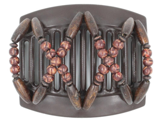 This Beada Brown Thick Hair Comb features printed boho beads in the center and gorgeously rich dark brown wood beads along the edges of the comb. Note: Bead color may have a slight variation from those displayed due to different devices.