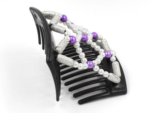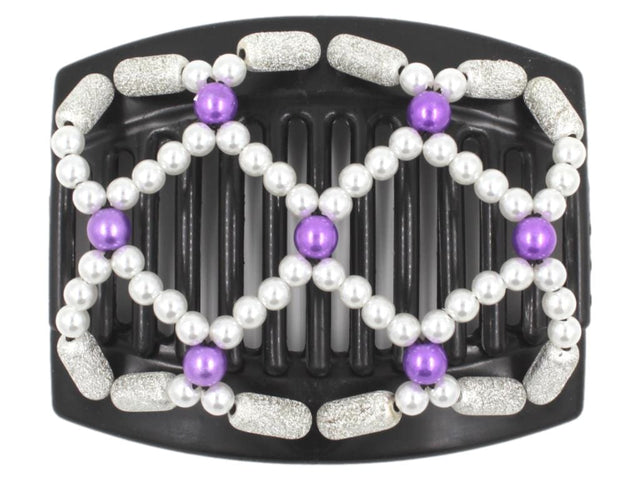 This Ndalena Black Thick Hair Comb is designed with thick hair in mind, ensuring it not only looks beautiful but also holds up well. The white and amethyst pearly beads add a classy touch to the hair comb, while the silver shimmer beads lining the edges give a dash of sparkle that catches the light in the most enchanting way. With the black comb base providing a sleek contrast, this hair accessory is sure to turn heads wherever you go.