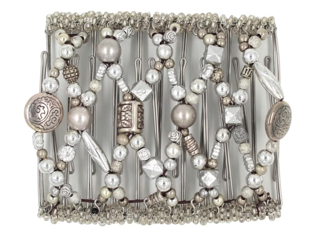 Embrace elegance and style with this exquisite 11 Tong Wire Hair Clip. With a stunning collection of silver and clear acrylic beads, embodying the creativity, authenticity, and quality that African Butterfly stands for, these beads are offered in a variety of shapes and sizes and are the perfect addition to your jewelry collection, adding a touch of glamour and charm to any ensemble.