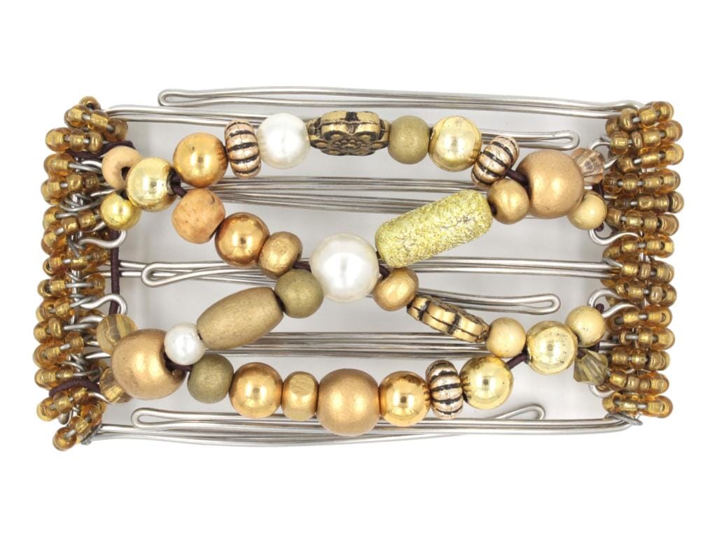 Elevate your hair game this holiday season with this festive 5 Tong Wire Hair Clip, a delightful accessory that adds a touch of whimsy and charm to any hairstyle. Handcrafted with love and attention to detail, this hair clip features a beautiful array of sparkling gold beads in various shapes and sizes, each carefully selected to bring joy and celebration to your look. It's not just a hair accessory; it’s like wearing a sprinkle of holiday magic that instantly brightens your day!