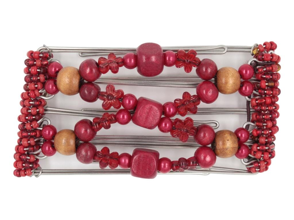 Add a pop of passion and bold elegance to your hairstyle with this stunning 5 Tong Wire Hair Clip, adorned with a captivating mix of fiery red wood beads, luscious cherry red pearly beads, and vibrant red acrylic flower beads. This eye-catching piece features rustic brown wood accents that add a warm and earthy touch, making it the perfect hair accessory for those who love to make a statement. Carefully handcrafted with attention to detail, each hair clip exudes the unique artistry that African Butterfly customers cherish.