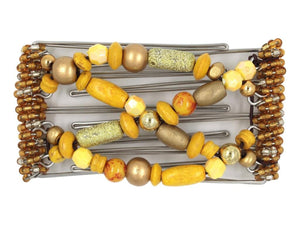 Experience the joy of summer with this sunny, golden 5 Tong Hair Clip. This happy clip adds a carefree touch to any hairstyle with its shining hue, radiating warmth and freedom. Whether you're beach-bound or running errands, this lightweight hair clip keeps your locks in place while giving your look a playful, summery vibe. Suitable for medium thickness hair to fine or thin locks, its sturdy design and gentle grip ensure a secure hold without causing damage or tangles.