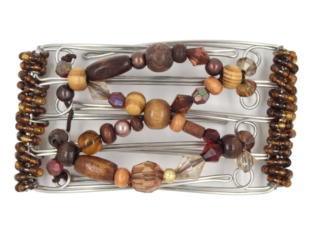 Add a whimsical touch to your hairstyle with this charming wood 5 Tong Hair Clip, featuring a delightful mix of different colors and sizes. Crafted with natural brown woods and brown acrylic beads, this hair clip brings a organic, earthy feel to your look. Its delicate design makes it perfect for fine or thin hair, adding a subtle pop of color and texture without overwhelming your locks. The unique combination of colors and sizes creates a playful, eye-catching effect, ideal for everyday wear or adding a bohemian flair to your special occasion style.