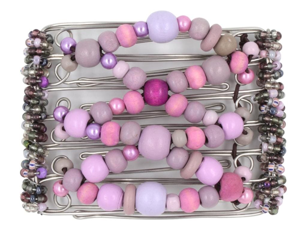 Step into a world of enchanting glamour with this 7 Tong Wire Hair Clip, a piece that is as unique as you are. This whimsical hair accessory is meticulously handcrafted, featuring a variety of shapes and textures of a beautiful array of purple shades. From the softest lavender to the deepest plum, this hair clip captures all the mystical allure of this royal color.