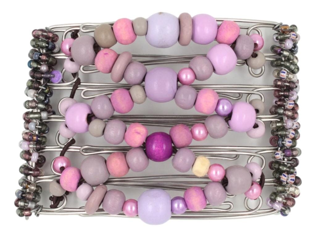 Step into a world of enchanting glamour with this 7 Tong Wire Hair Clip, a piece that is as unique as you are. This whimsical hair accessory is meticulously handcrafted, featuring a variety of shapes and textures of a beautiful array of purple shades. From the softest lavender to the deepest plum, this hair clip captures all the mystical allure of this royal color.