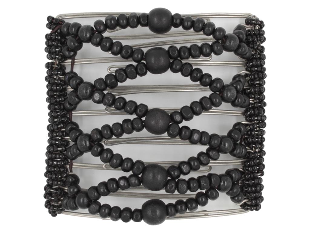 Elevate your look with this 9 Tong African Butterfly Wire Hair Clip. Its all-black wood beads create an eye-catching silhouette, while its popular design brings a fashionable flair to any outfit. Perfect for adding a touch of sophistication to any occasion. Note: Bead color may have a slight variation from those displayed due to different devices.