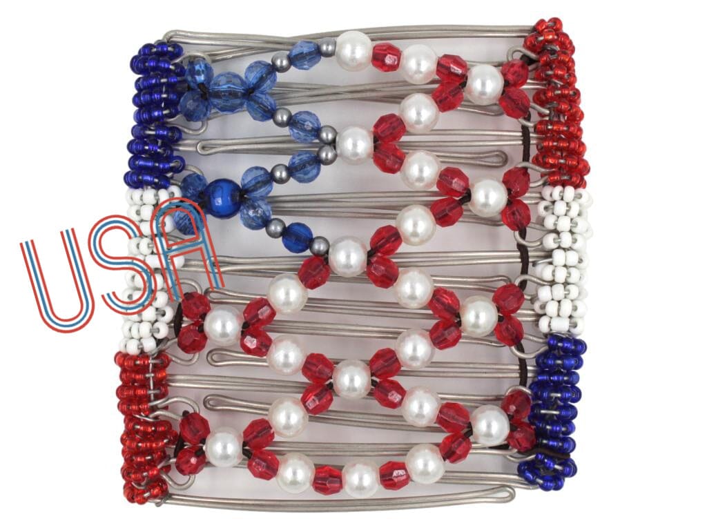 Let's show support for our country and acknowledge the sacrifices of our brave heroes with this 9 Tong Wire Hair Clip that proudly displays the American flag. Its vintage-inspired design has a unique charm that will surely draw attention from other patriotic Americans. Practical and fashionable, this hair clip is suitable for both casual and dressy occasions. The 9 Tong design creates a strong hold that will last all day, keeping your hair in place and looking great.