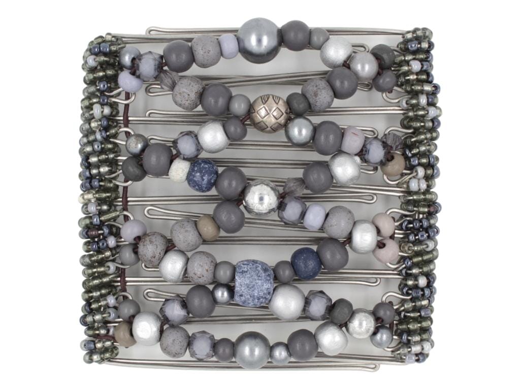 Crafted with an array of unique beads in various shapes and sizes, each one is thoughtfully selected to create a beautiful symphony of stormy blue and gray hues. This eye-catching hair accessory draws inspiration from the timeless beauty of blue jeans, effortlessly bringing a dash of casual chic to any outfit. The sturdy 9 Tong Wire Hair Clip is designed to comfortably hold a good volume of hair without causing any discomfort or breakage. Our hair clips are handcrafted with great attention to detail and quality, embodying the creativity, authenticity, and craftsmanship that African Butterfly stands for. They're built to last, just like your favorite pair of blue jeans.