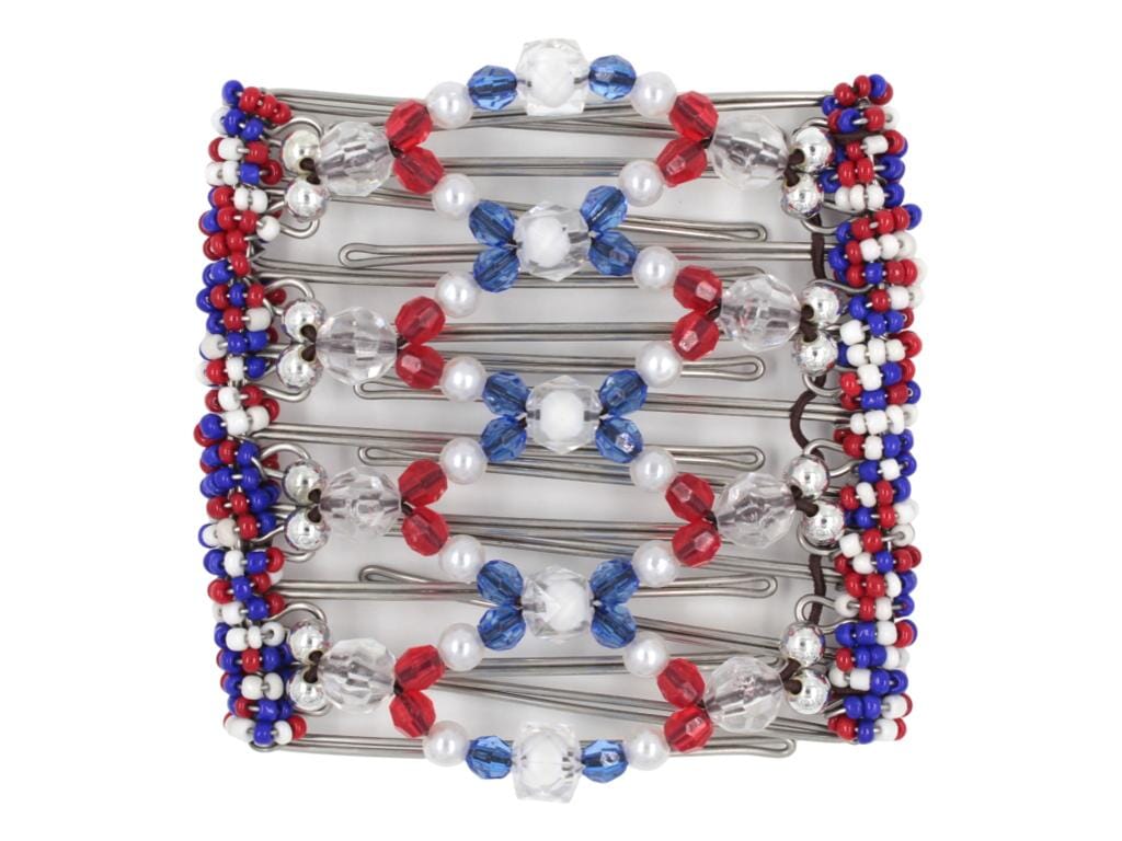 Show your patriotic spirit with our charming rustic matte wood beaded 9 Tong Wire Hair Clip, featuring a classic red, white, and blue American flag design. The natural, earthy texture of the wood beads adds a cozy, homespun touch, while the bold colors evoke the stars and stripes of the American flag. Perfect for 4th of July celebrations, summer BBQs, or everyday wear for those who want to showcase their patriotism. The rustic, matte finish gives this hair clip a unique, laid-back vibe that's sure to add a charming touch to your hairstyle.
