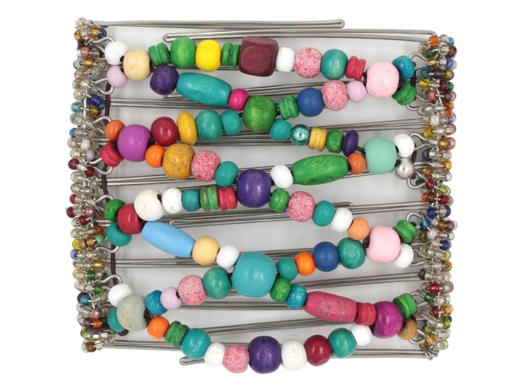Are you looking for a unique hair clip that will help make a statement and spruce up your look? Look no further! This exclusive one-of-a-kind 9 Tong Wire Hair Clip is everything your thick hair needs! It is crafted with all different sizes and color beads for maximum style appeal. This versatile and stunning fiesta will be sure to turn heads and leave a lasting impression. It is the perfect way to accessorize any outfit while adding a touch of fun and creativity to your look. The sleek and modern design pairs perfectly with with, long and thick hair! With this piece, you can feel free to express your individual sense of style and let your personality shine through.