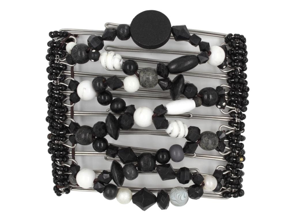 Add a touch of chic sophistication to your evening look with this 9 Tong Wire Hair Clip, featuring a striking mix of black and white beads. Perfect for a fancy party or night out, this stylish clip will keep your hair securely in place while adding a dash of modern glamour to your overall look. The contrasting black and white beads create a sleek, eye-catching effect that complements any formal hairstyle or outfit. Whether you're looking for a polished finish to your updo or a sleek accent for your loose locks, this hair clip is sure to turn heads. Its sturdy 9 tooth wire design ensures a comfortable and secure hold, making it a must-have accessory for any special occasion.