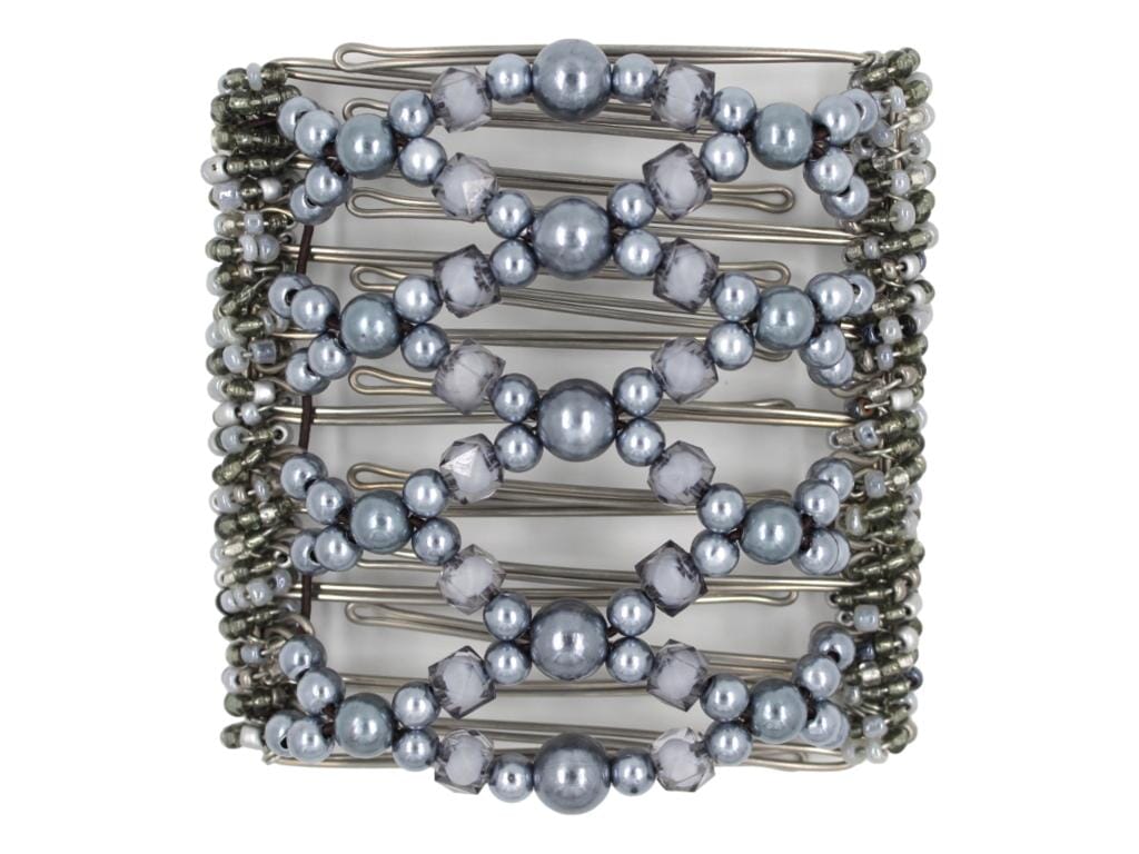 Elevate your thick hair style with this captivating beaded hair clip, expertly crafted to add a touch of drama to any hairstyle. Featuring a 9 tooth wire frame, this stunning hair accessory showcases an array of unique beads in various shapes and sizes. The mesmerizing palette of stormy gray hues adds a sophisticated accent to any look, perfectly complementing a variety of hair types and textures. Whether you're seeking a chic accessory for everyday wear or a statement piece for special occasions, this beaded clip is sure to impress.