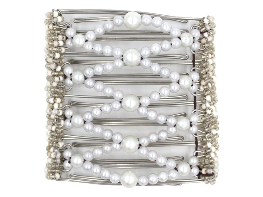 Add a touch of bridal elegance to your wedding hairstyle with this 9 Tong Wire Hair Clip, a stunning accessory designed to secure your bridal hair in style. This beautiful hair clip features all elegant white pearl beads, creating a luxurious and sophisticated look that's perfect for your special day. With its sturdy 9 tooth design, this hair clip ensures a secure and comfortable hold, allowing you to shine with confidence throughout your special day.