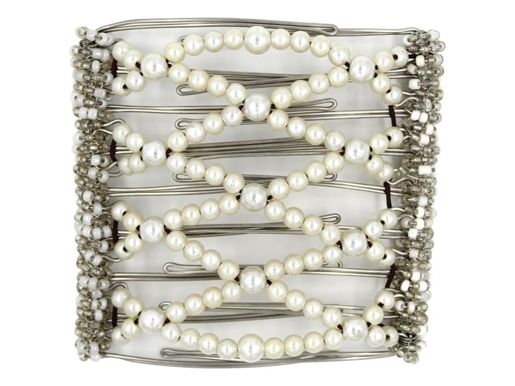 Add a touch of bridal elegance to your wedding hairstyle with this 9 Tong Wire Hair Clip, a stunning accessory designed to secure your bridal hair in style. This beautiful hair clip features all elegant pearl white beads, creating a luxurious and sophisticated look that's perfect for your special day. With its sturdy 9 tooth design, this hair clip ensures a secure and comfortable hold, allowing you to shine with confidence throughout your special day.